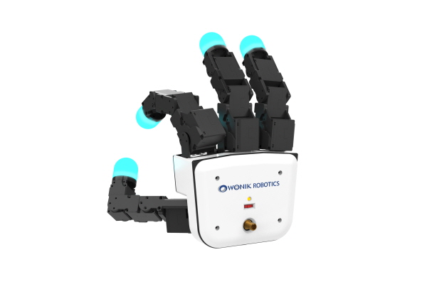 원익로보틱스는 ‘2024 로보월드’에서 각 손가락 끝에 전방위 촉각센서를 적용한 알레그로 핸드(Allegro Hand) V5)를 공개한다. 알레그로핸드는 10년 이상 개발 및 판매되어 온 로봇핸드 개발 플랫폼이다. 기존 알레그로 핸드 V4의 업그레이드 버전으로, 기존 V4 사용자를 고려하여 동일한 개발 환경을 제공하며, 사용자의 편의성을 고려한 다양한 기능을 추가했다. 기존 V4에서 고객 불편사항이었던 손가락 마디 간의 케이블 노출 문제도 관련 구조 개발을 통해 고장률을 줄이고 인체에 더욱 가까운 형태를 취하도록 개발했다. 기존 V4에 비해 3배에 달하는 가반하중을 가지고 있어 파지 대상 물체 선택의 폭이 넓어졌다.